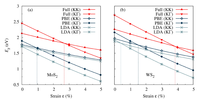Many-body and spin-orbit effects on direct-indirect band gap transition of strained monolayer MoS2 and WS2